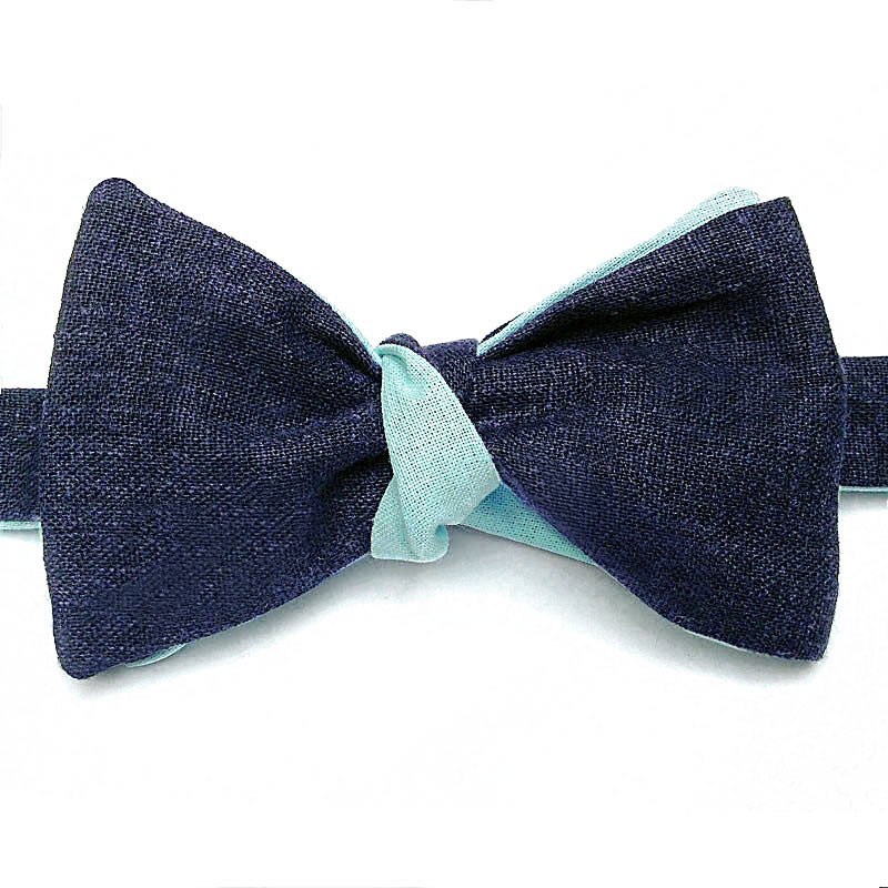 Noeud papillon bleu nuit vert d’eau lin twist