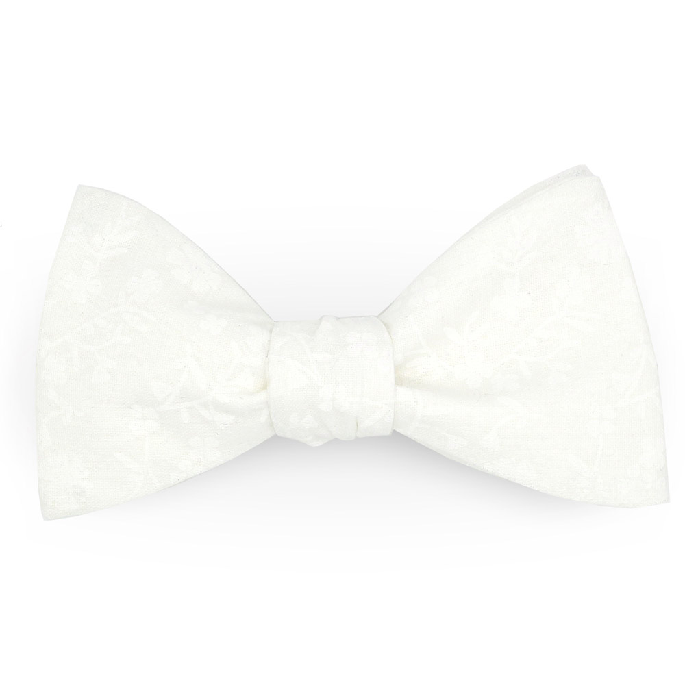 Noeud papillon blanc cassé imprimé fleuri
